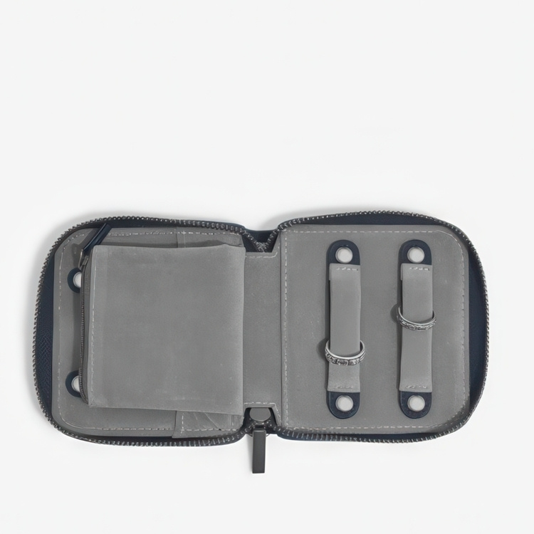 Purse, STACKERS MAN COMPACT JEWELLRY ROLL, 11 x 11 x 2,5 cm, Pebble Navy / Grey