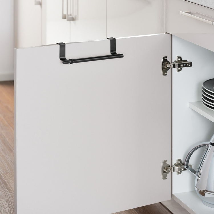 Towel rack / rail that acts as an extra hanger. Use the drawer or cupboard door in the kitchen, bathroom or laundry room in a more efficient way. The towel hanger in stainless steel for towels is easily hung over the cabinet door or drawer.