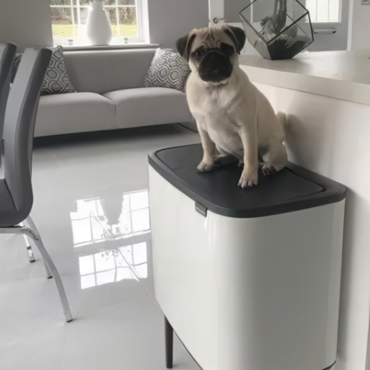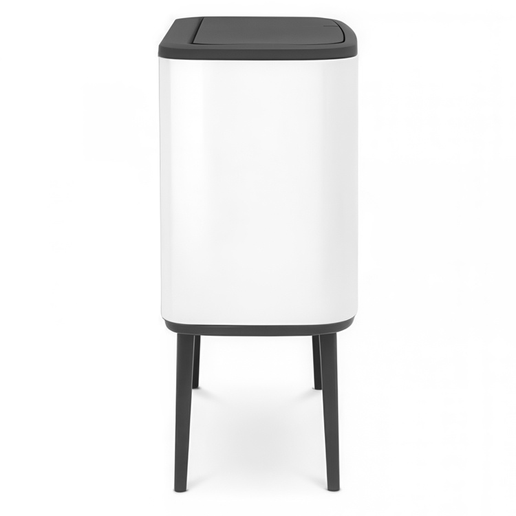 It fits perfectly against a wall and it is very stable, thanks to the adjustable non-skid legs. Its soft-touch opening makes for easy and light operation at the touch of your hand. -