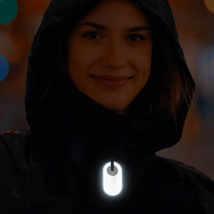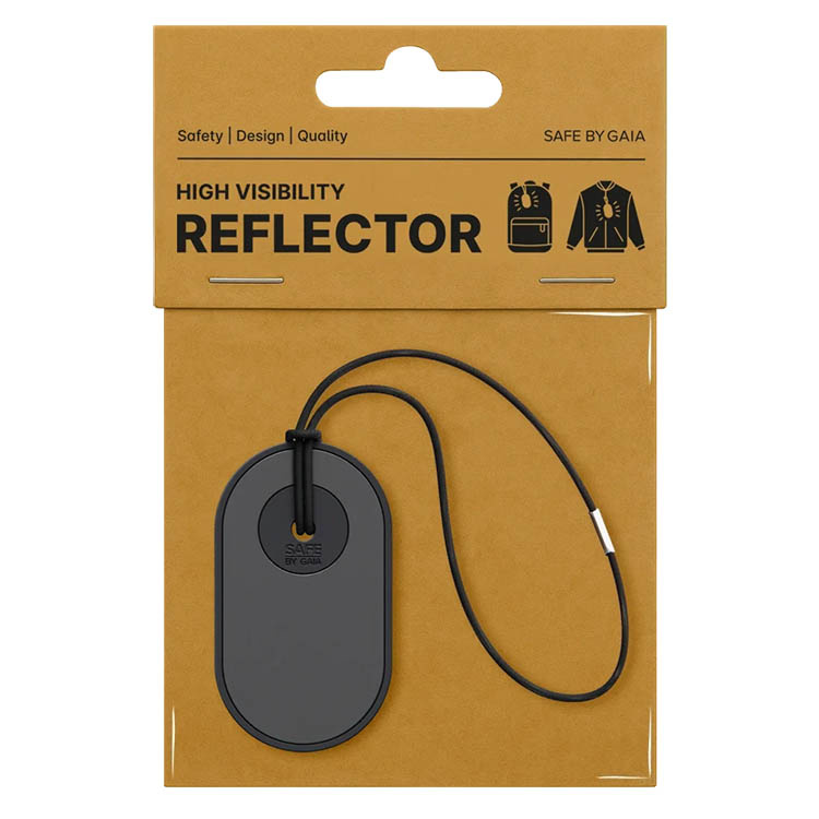 Reflector with elastic cord from Safe by Gaia is a stylish and high reflective reflector that makes you extra visible in darkness. The reflector is made of durable, recycled plastic and coated with CE certified 3M Scotchlite material that provides even and powerful light reflection. The elastic cord makes it easy to attach to jacket, bag or other accessories.