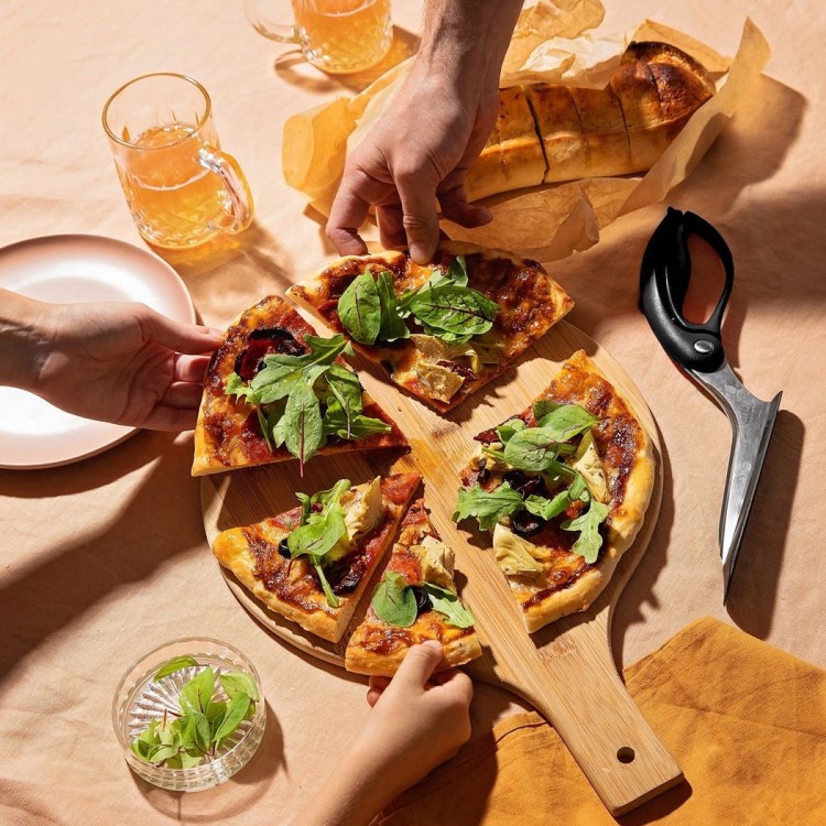 The easiest way to clean the multi-purpose scissors is to take them apart and pop them in the dishwasher.