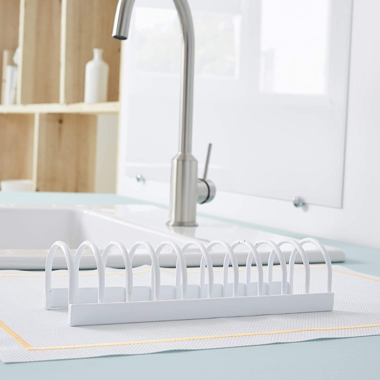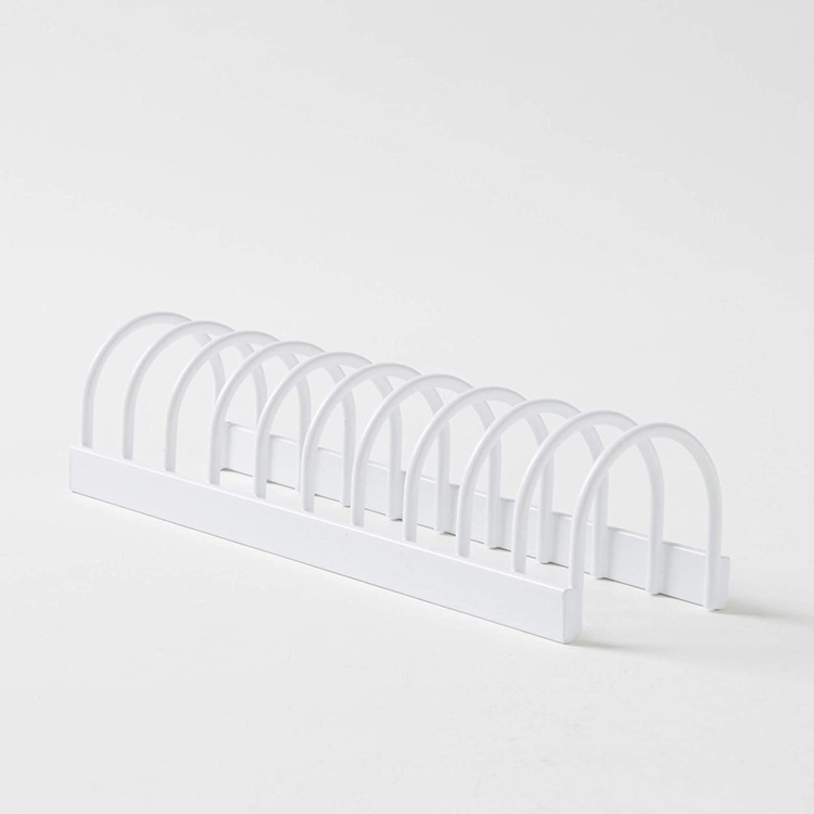 Saucers & small lids Organiser, 10 Slots, KITCHEN RACK, 24,5 x 7 x H6 cm, White
