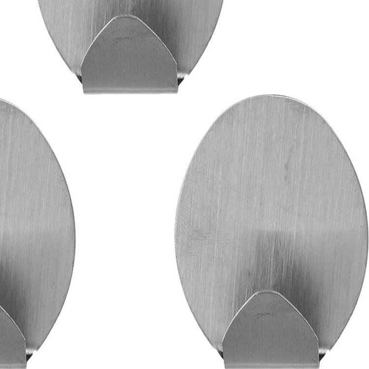 Self-adhesive metallic hooks, set of 3, OVAL LARGE, 3,5 x 2 x H 5 cm, Stainless steel