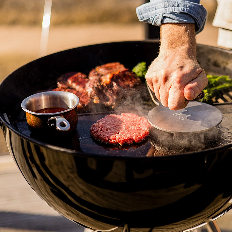 The griddle is designed to fit kettle grills with a diameter of 57 cm and a cooking surface of 54 cm, such as the Weber 57. The half-round shape covers one side of the grill while leaving the other side free for traditional grilling. This provides great flexibility and makes it easy to cook several different ingredients simultaneously.Smart design with drainage