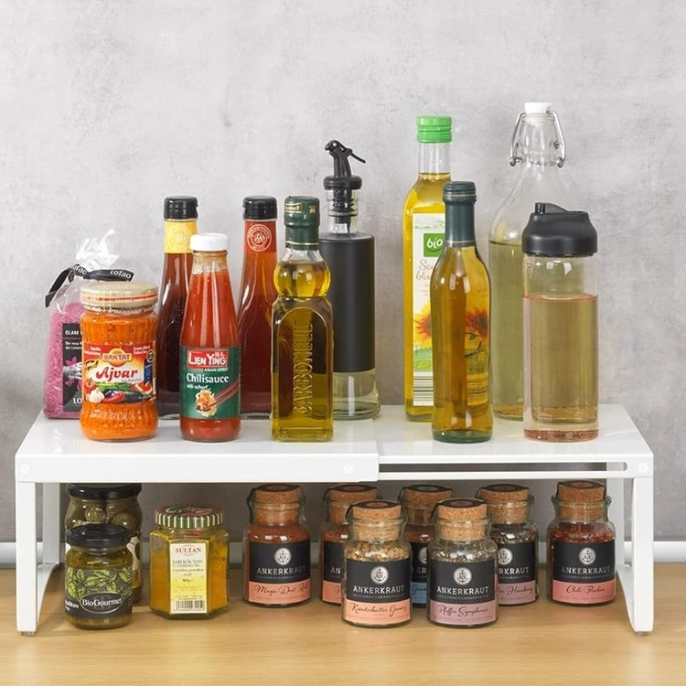 For use on kitchen worktops or in cupboards to maximise storage space and keep items organised.