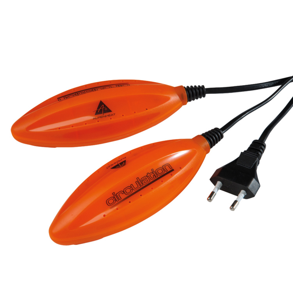 Place the dryers in a pair of damp shoes, connect them to a power source, and just a short time later they'll reach their optimum working temperature (approx. 30 °C). By using an innovative circulation technique, the drying process is accelerated and the dryers will run completely silently. Drying times will vary depending on how wet the shoes are but the end result is always comfortably dry and fresh shoes.