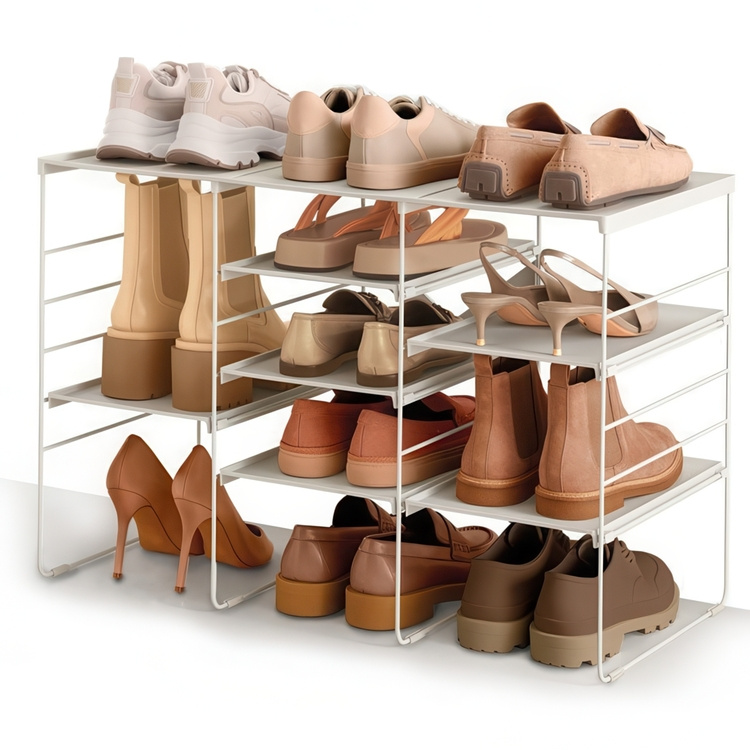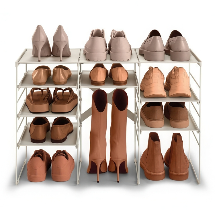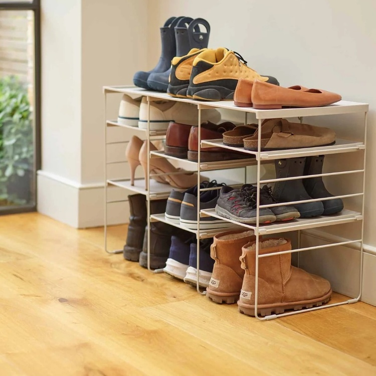 Shoe Rack in Metal, Adjustable, LEVEL TRIPLE, Joseph Joseph, 75,8 x 35 x H 51,2 cm, Ecru