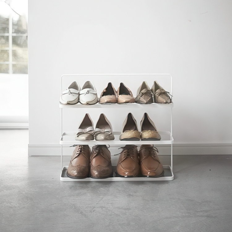 Shoe Shelf in Metal, TOWER WIDE SHOE RACK, Yamazaki, White