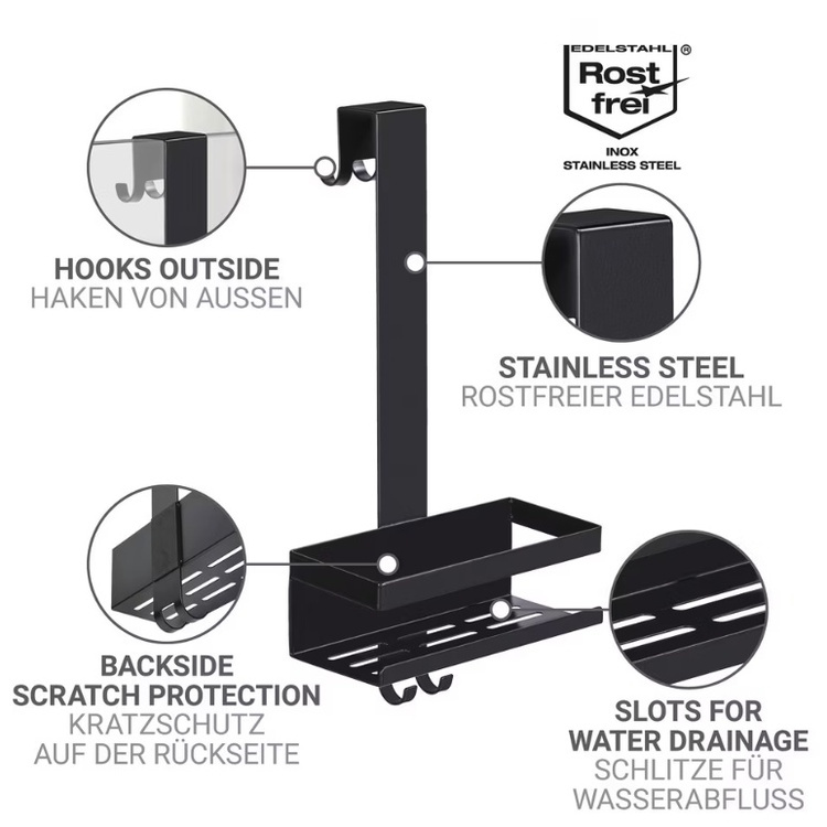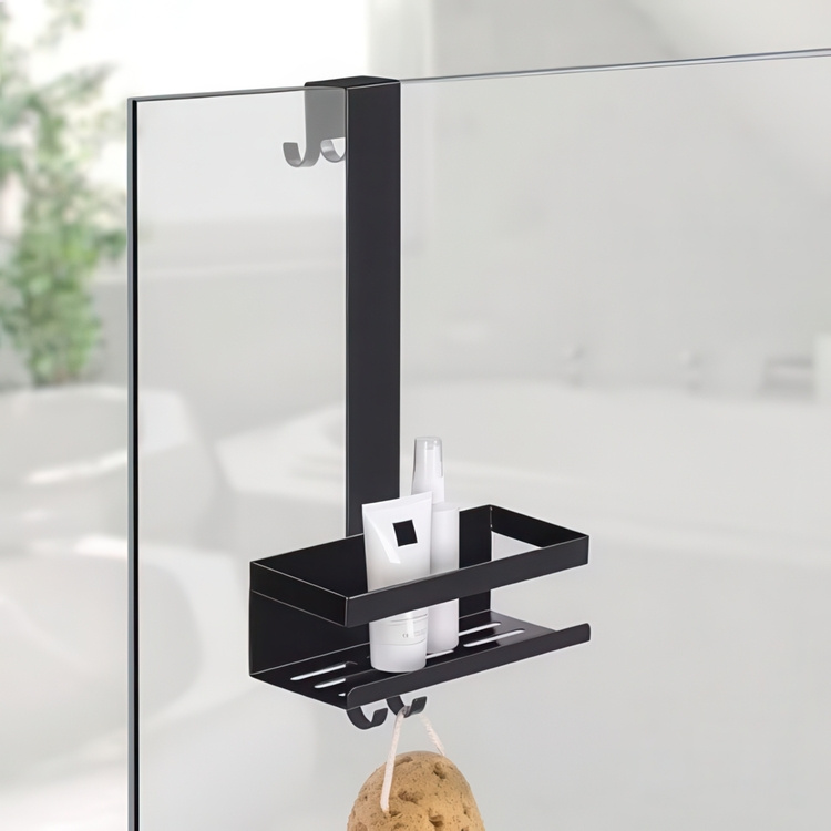 Shower basket in metal, Over door, BRIBANO UNO CADDY, Black