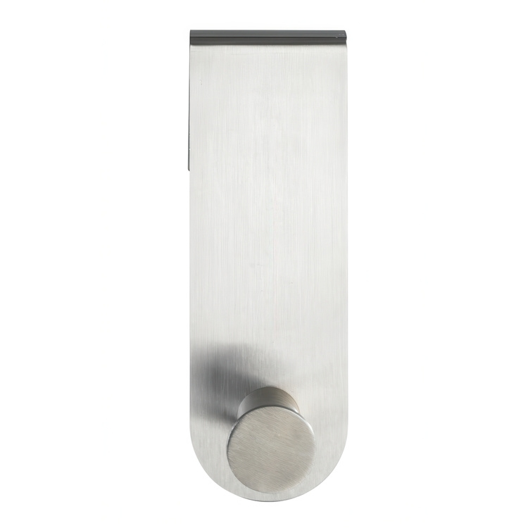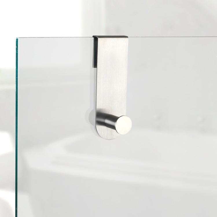 Practical and stylish hook in stainless steel for shower doors or shower walls.