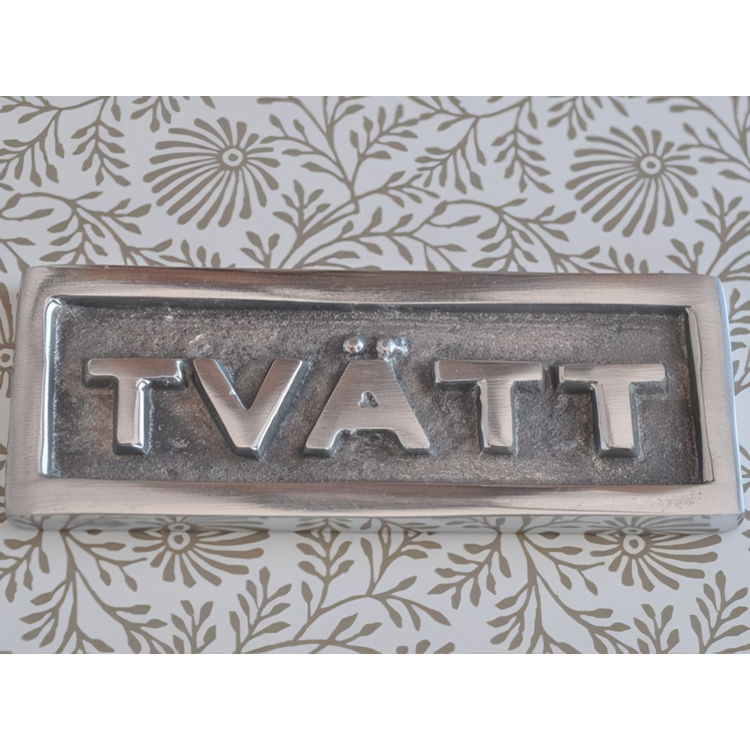 Sign with frame, TVÄTT, 9 x H 3,5 cm, Exmez, Sand-cast aluminum
