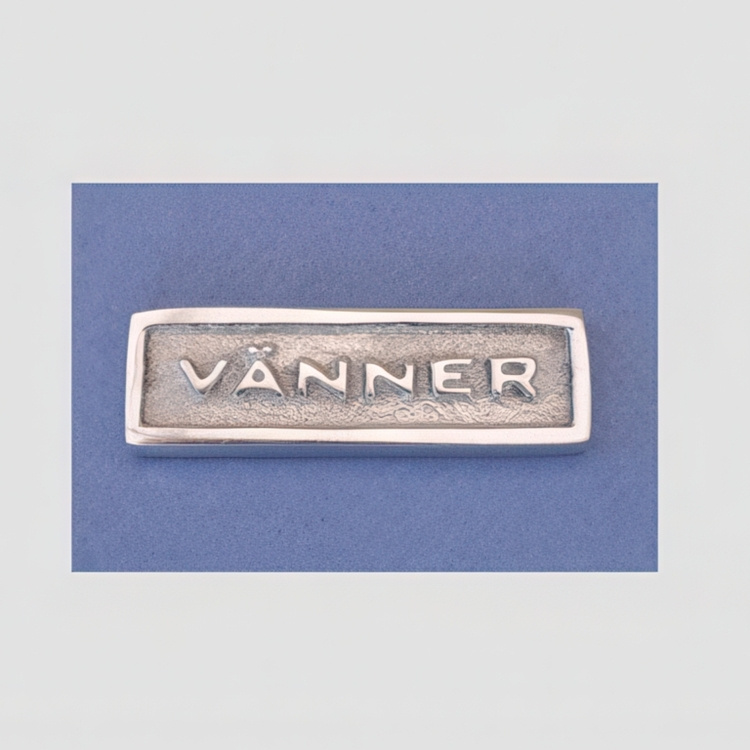 Sign with frame, VÄNNER, 5 x H 1,8 cm, Exmez, Sand-cast aluminum