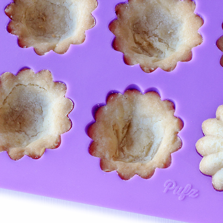 The tray is made of 100% food-grade silicone and the 15 moulds each hold about 15 ml. Since the tray is made of silicone, it is easy to remove the biscuits from the tray once they are done. You can even push gently against the back of the tray to pop them out.