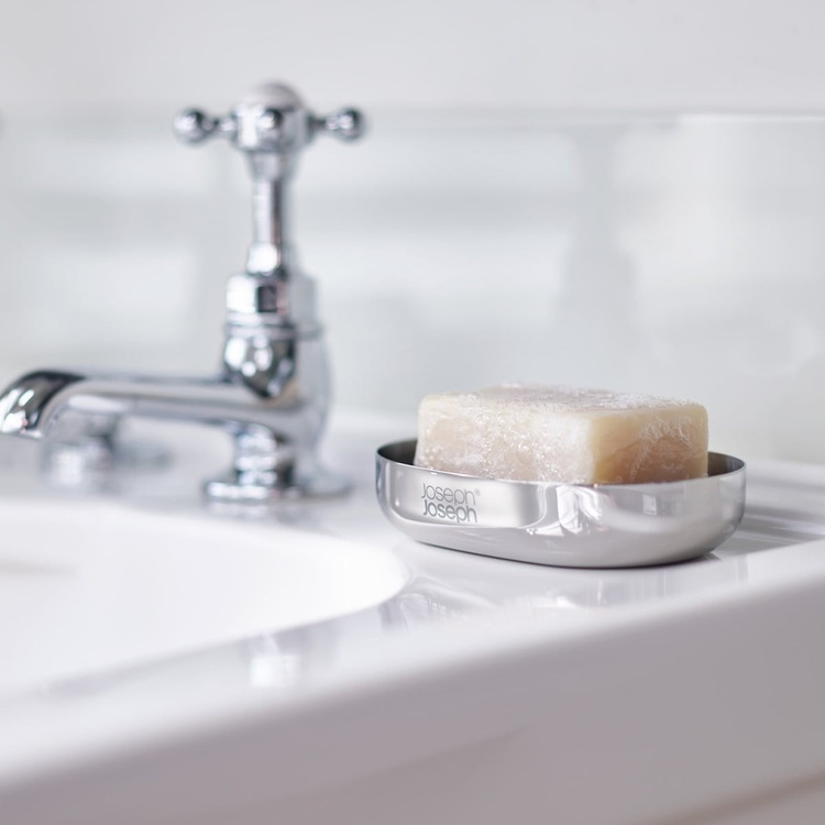 Soap cup in Stainless Steel, EASY STORE LUXE, 11.5 x 8 x H 2,5 cm, Joseph Joseph , Silver / Grey