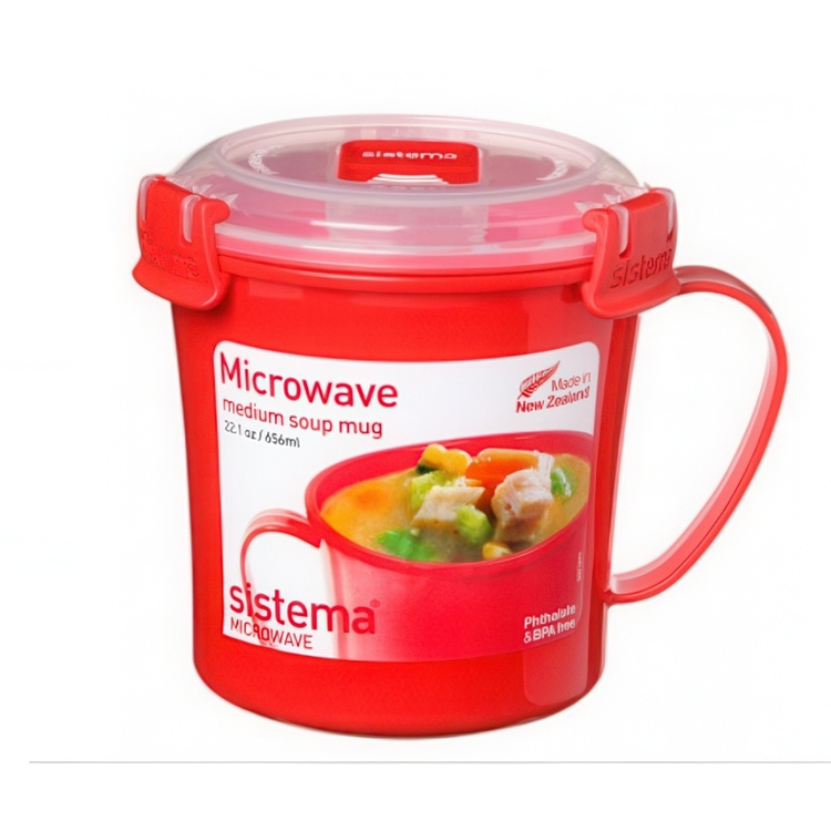 The Sistema Microwave soup mug is ideal for soup, stews, noodles and hot drinks at home or at the office.
