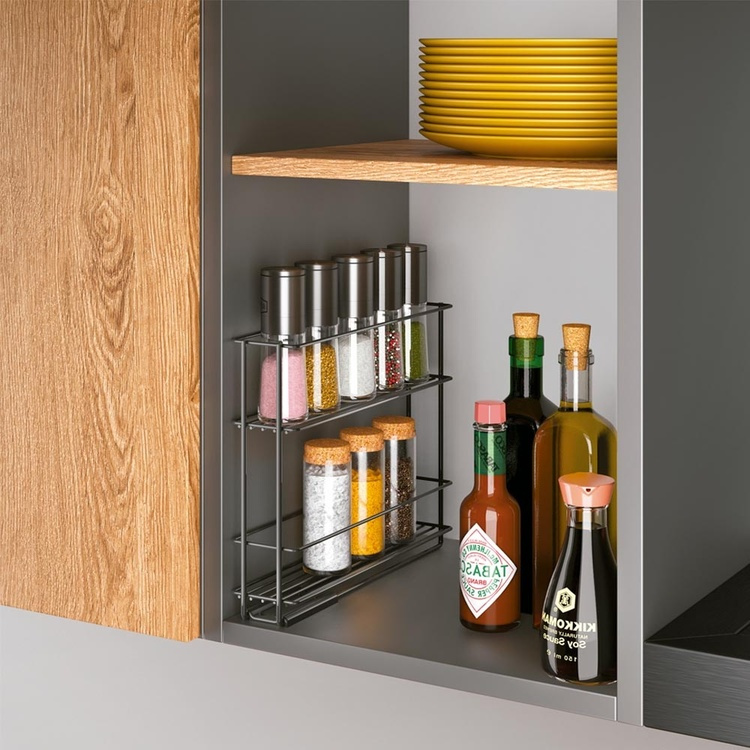 Smart! Because you can pull out the shelf, you can easily access your spices.