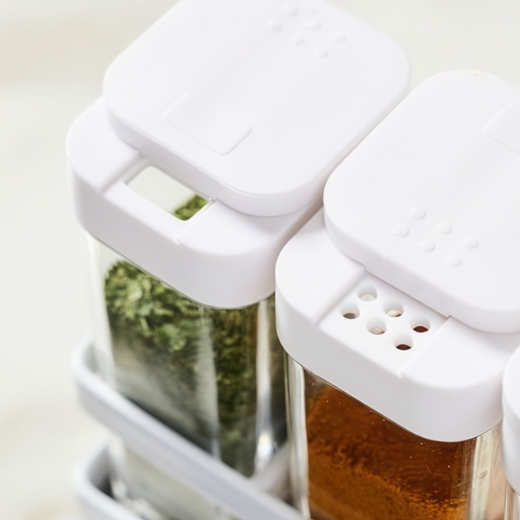 The top lids can slide so that you can open bottles with one hand, and they are equipped with spouts for sprinkling or pouring.