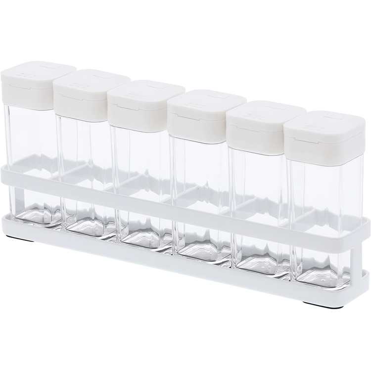 Spice rack with 6 Bottles, TOWER, Yamazaki, White / Clear