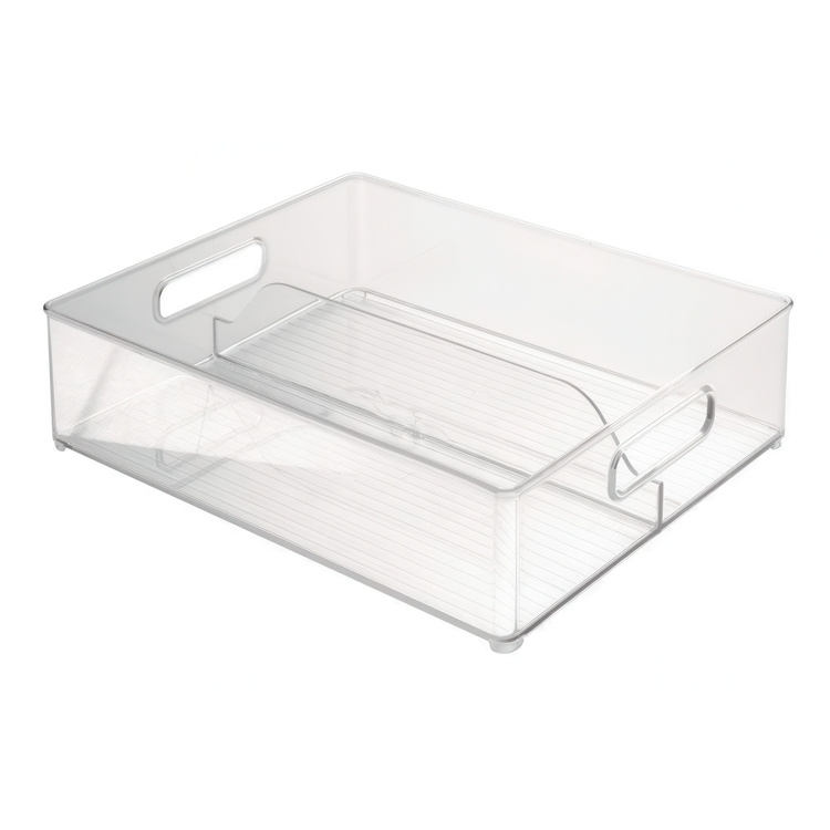 Stackable storage box with divider and handle, KITCHEN BINZ, 30,5 x 36,8 x H10,2 cm, Clear