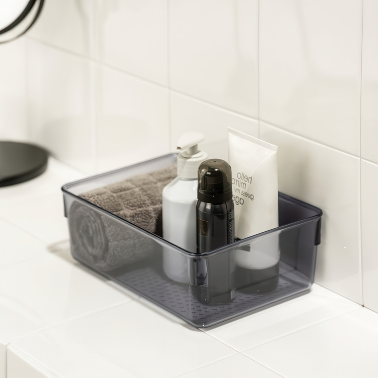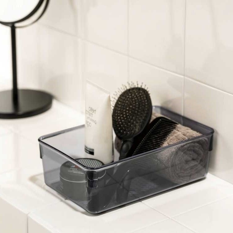 Storage Box in recycled plastic, SAN DIEGO, 24,4 x 16,3, x H 8,5 cm, Transparent grey