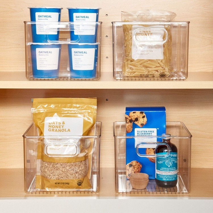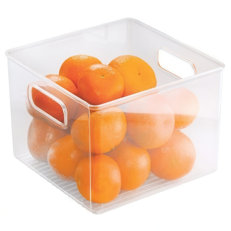 Transparent storage box / organizer bin for food storage in fridge or pantry.