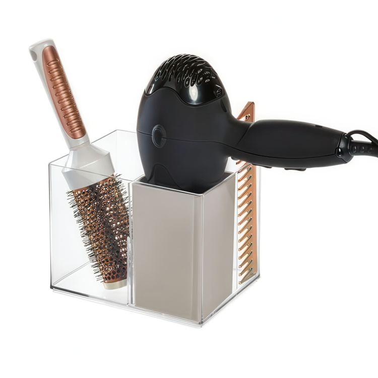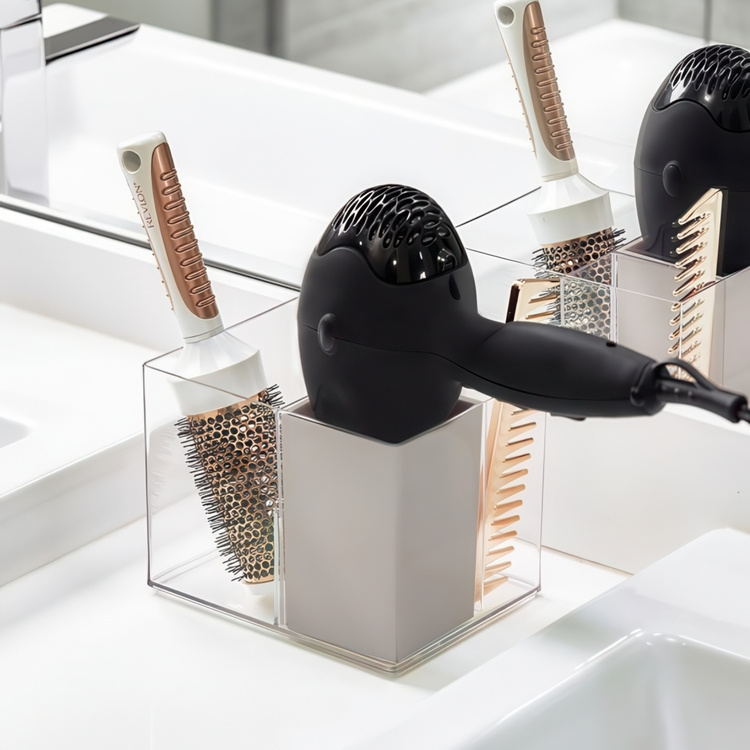 Storage Box, THE HOME EDIT HAIR TOOL HOLDER, 13,3 x 17,1 x H 13,3 cm, Clear / Grey