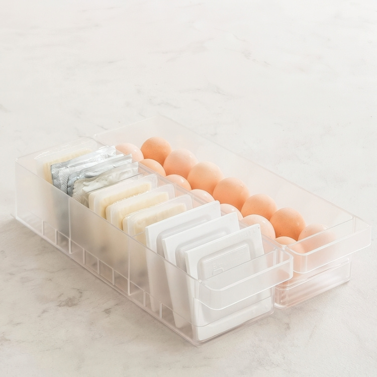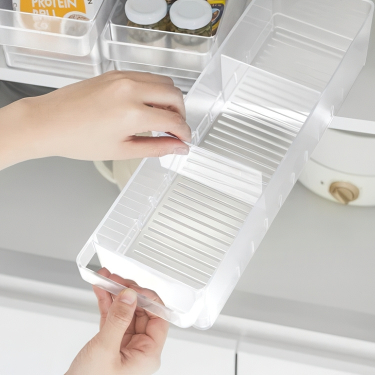 Storage box with dividers, Stackable, TOWER FRIDGE ORGANIZER , Yamazaki, Tranparent