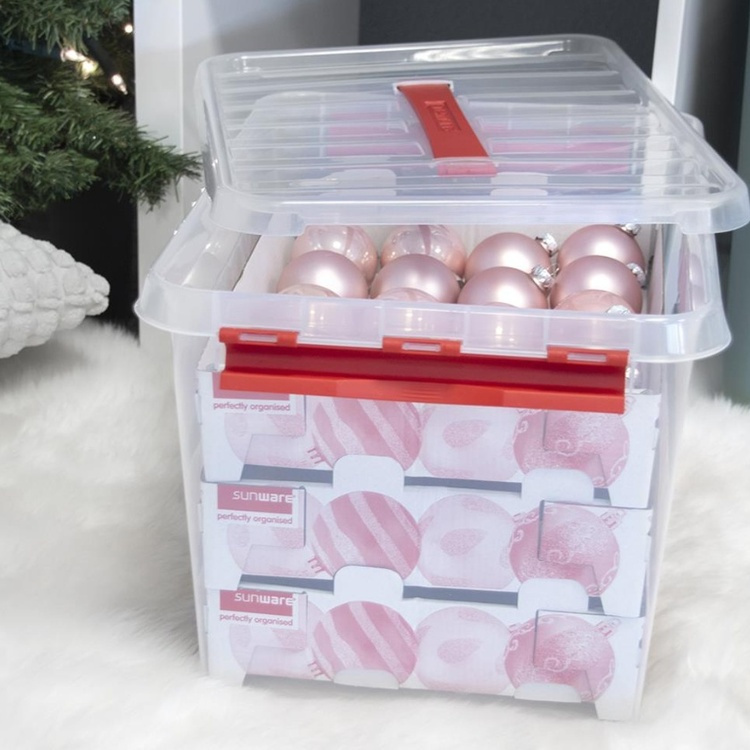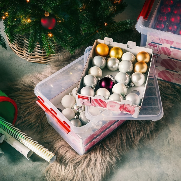 A storage box ideal for storing Christmas balls.