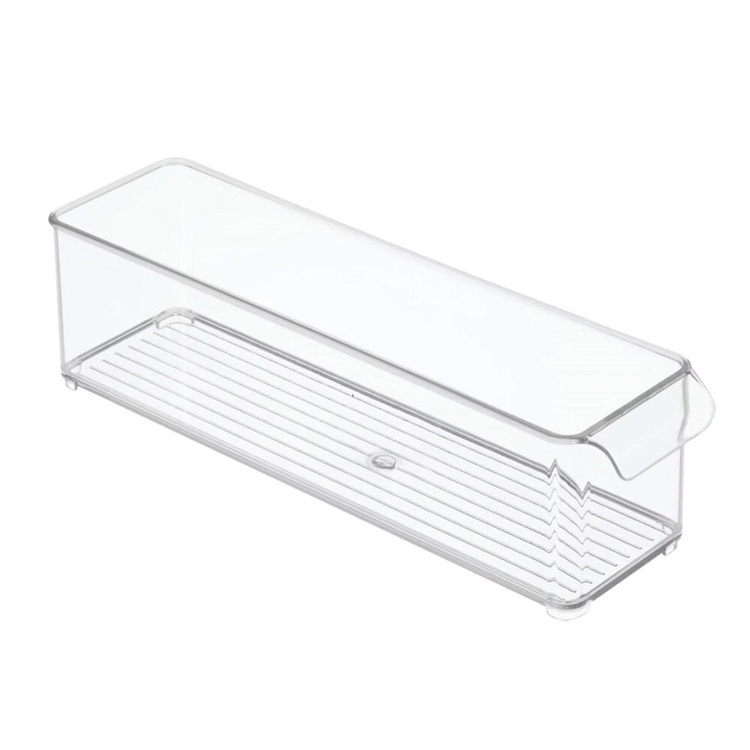 Storage box with handle, Slim and Deep, Stackable, PULLZ FRIDGE BINZ, 10 x 37 x H 10 cm, Transparent