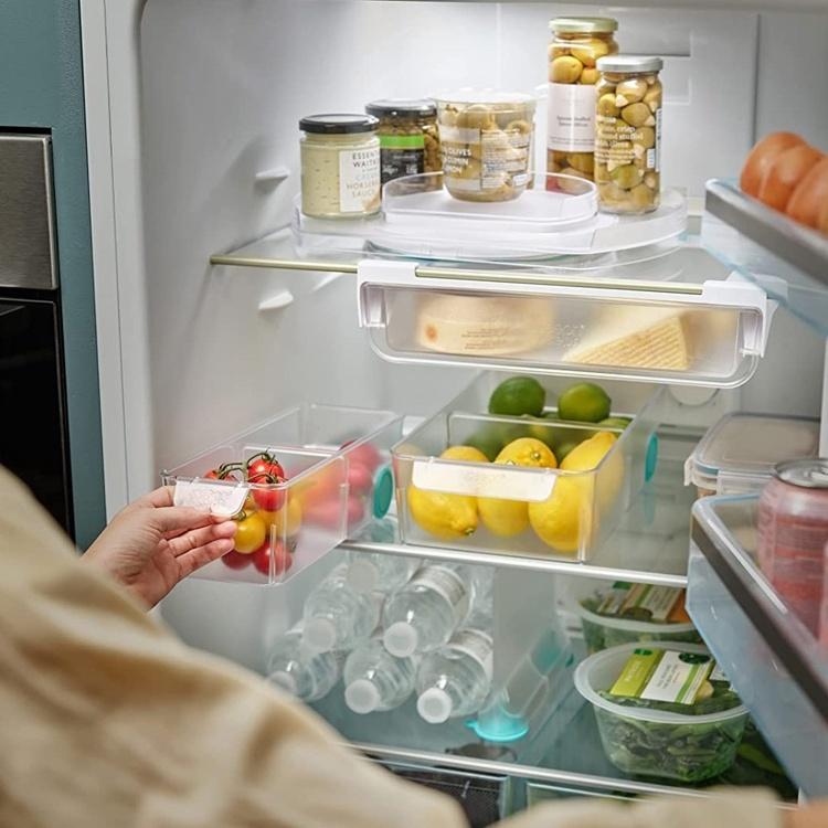 It features an easy-pull handle and smooth-running wheels that make access easy and includes a removable divider.