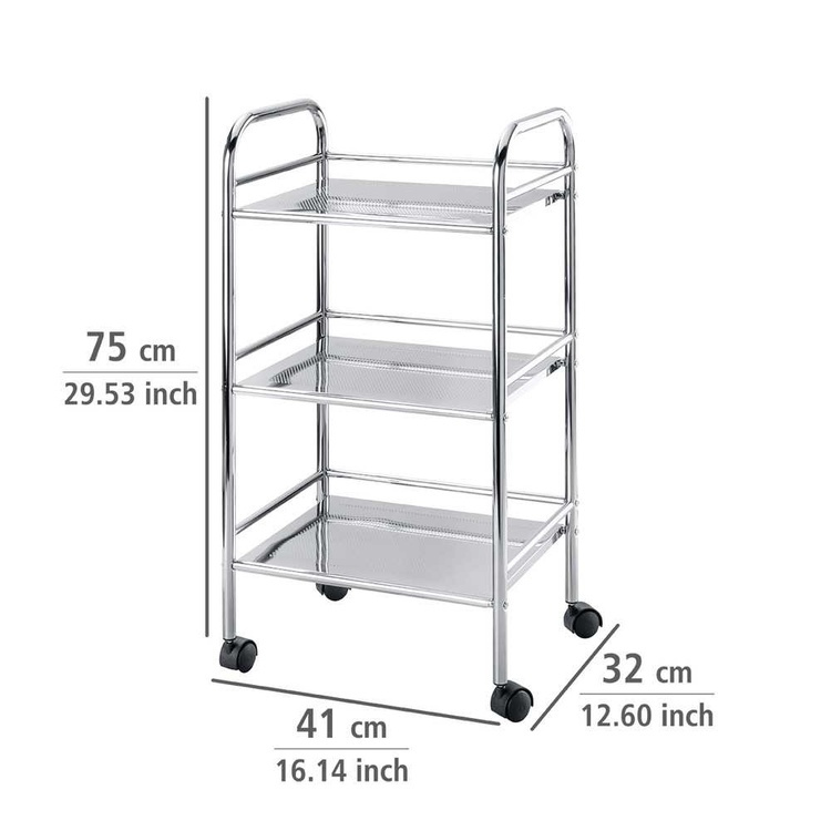 Storage trolley on wheels, EXCLUSIV HOUSHOLD WAGON, 41 x 32 x H 75 cm, Chrome