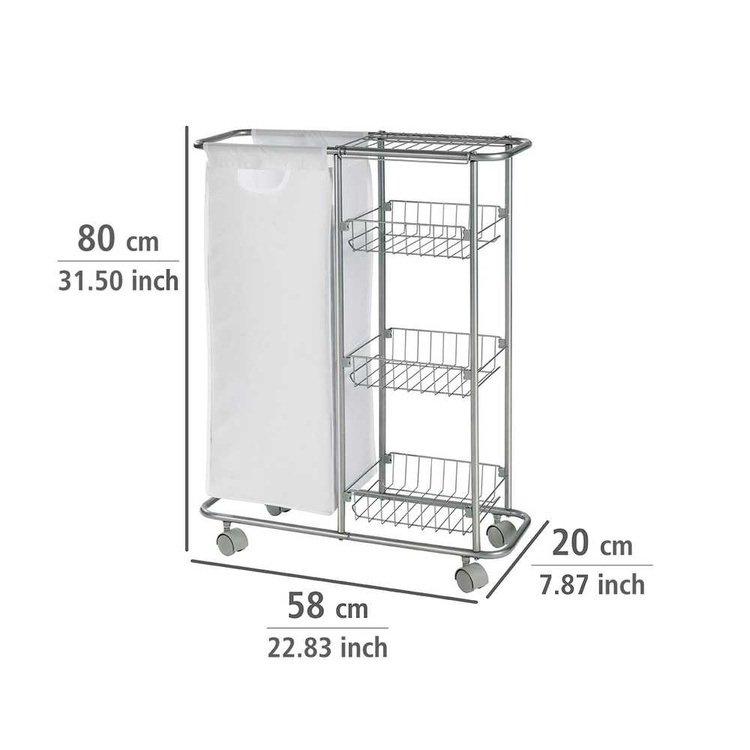 This wagon can hold different kinds of bathroom items such as sanitary goods, toilet paper rolls, cleaning items or other things you would like to hide and store. The bag is perfect as laundry bag. -