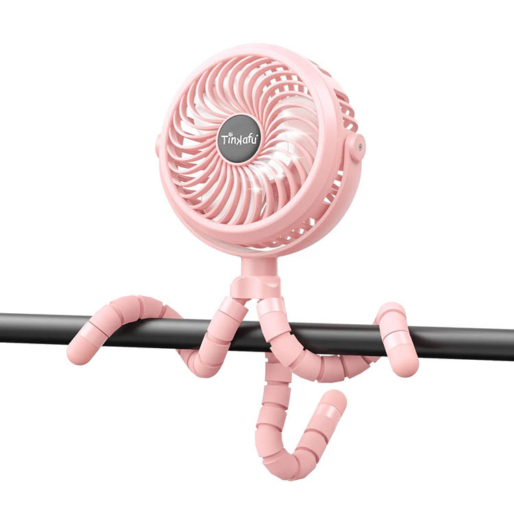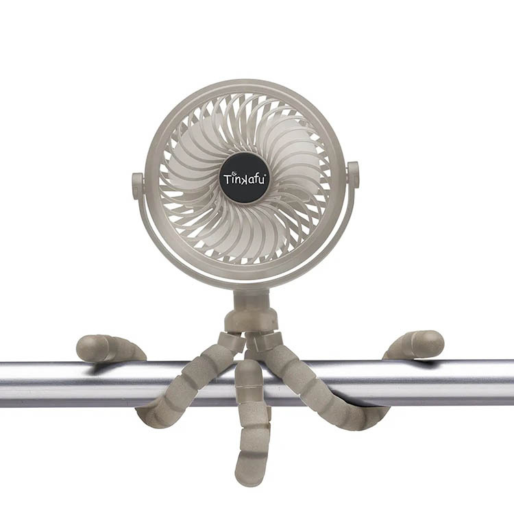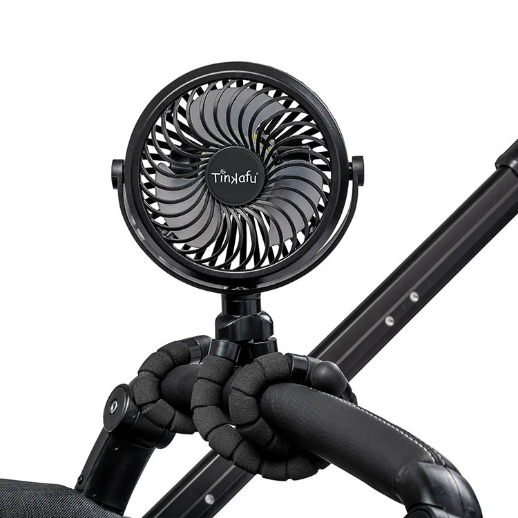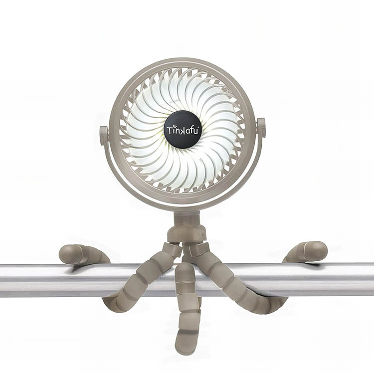 Stroller fan from Tinkafu that keeps your child cool in summer heat. With three speeds, quiet operation, and up to ten hours of battery life, it is a practical accessory for both everyday and travel. The fan has flexible legs making it easy to attach to single and double strollers, cribs, or other surfaces. It is safe to use near children thanks to a tight protective grille and also features built-in LED lighting with three brightness levels.