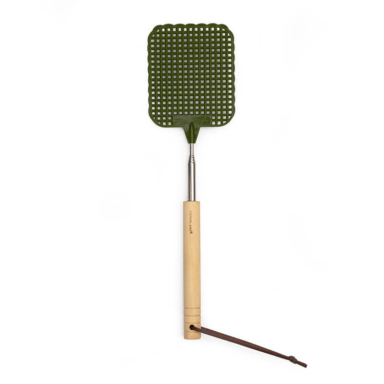 The telescopic handle made of stainless steel can be adjusted from 29,5–74,5 cm to easily reach where you need. The flyswatter's striking surface is made of ABS plastic which ensures durability and long-lasting use. Robust wooden handle with suspension cord.Compact design
