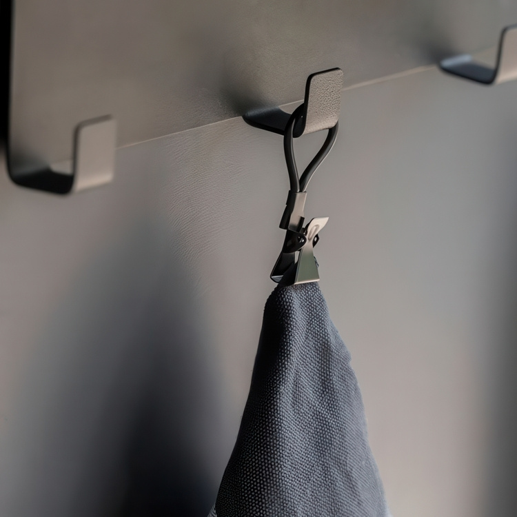 The holder is easily hung on the hook for the bathroom or kitchen towel. The bracket itself, similar to crocodile teeth, firmly grips the towel. -