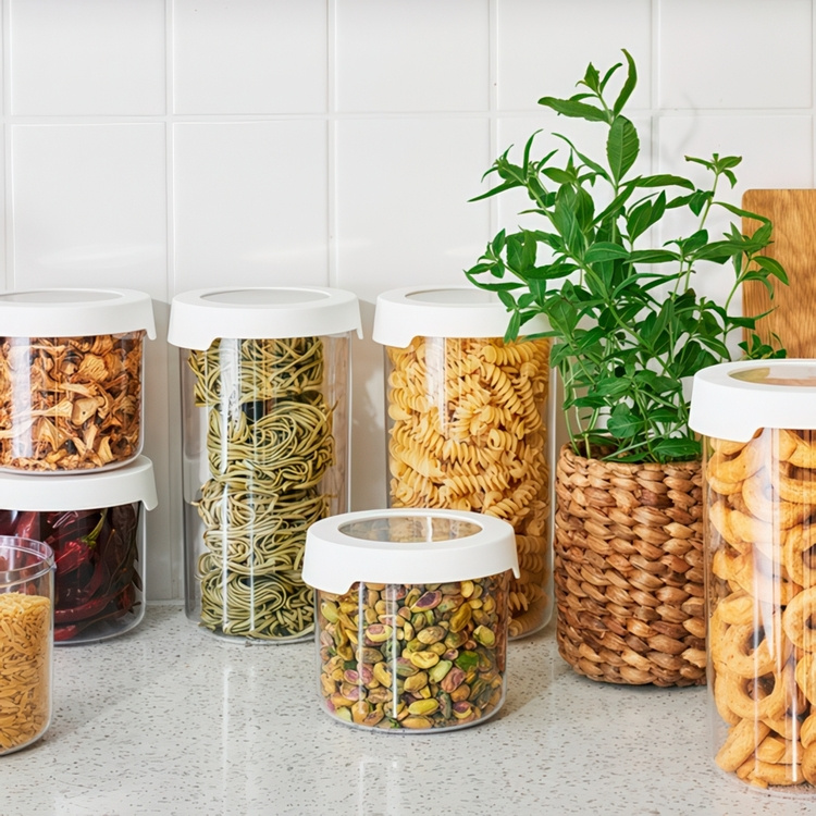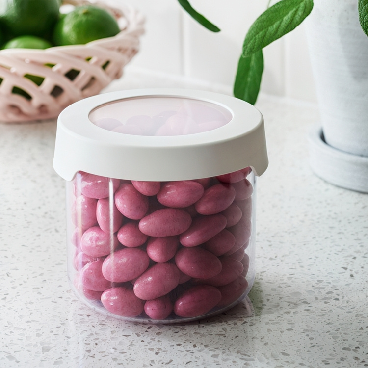 Transparent, stackable and airtight storage container! Suitable for both dry storage and refrigeration. In this can you store eg. nuts, pasta, flakes and flour.