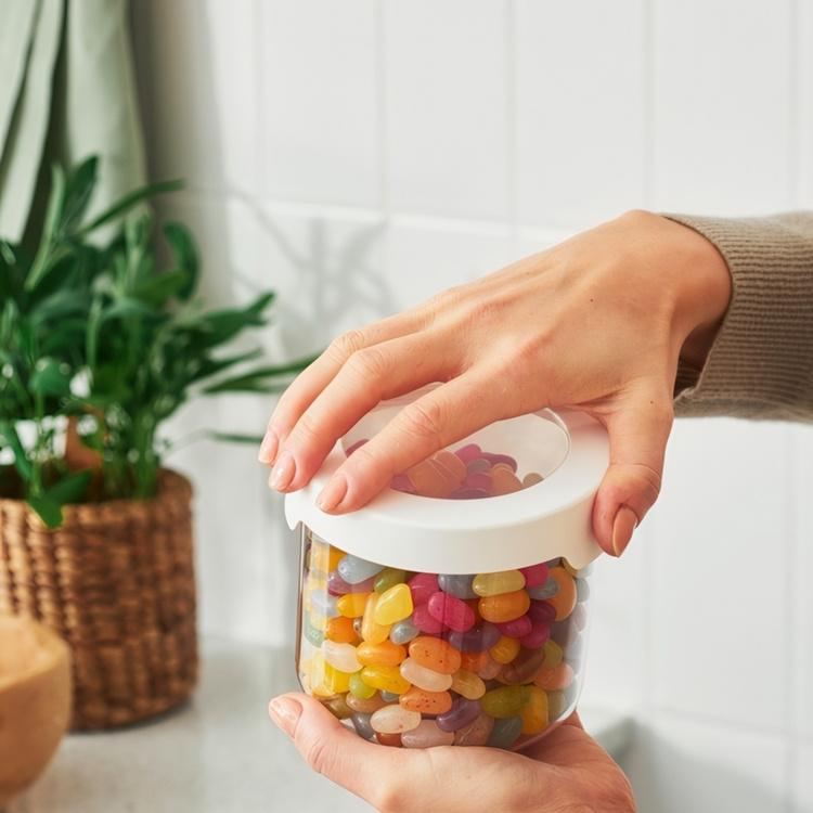 The airtight cover protects the contents from moisture odor, dust and bacteria. The container is suitable for dishwasher use. -
