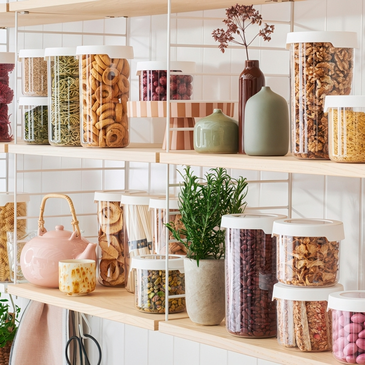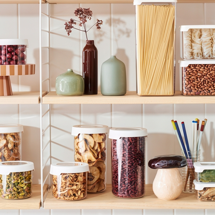 Transparent, stackable and airtight storage container! Suitable for both dry storage and refrigeration. In this can you store eg. nuts, pasta, flakes and flour.