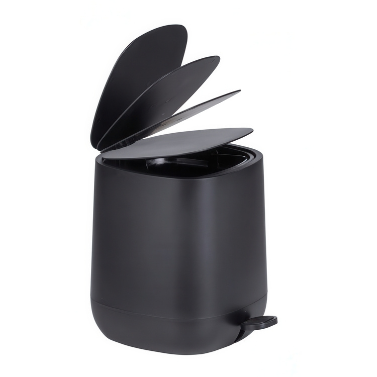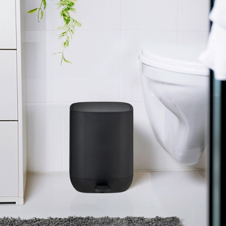 A stylish black pedal bucket trash bin of 5 L with a removable plastic container inside.