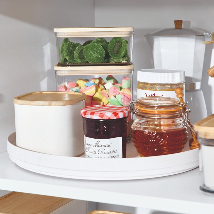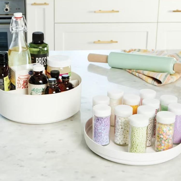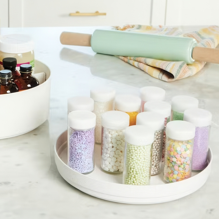 A rotating tray that allows you to quickly access your things and easily see what you have.