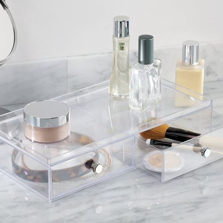 Two drawer box storage, ID CLARITY WIDE VANITY DRAWER, 33 x 16,5 x H 7,6 cm, Clear