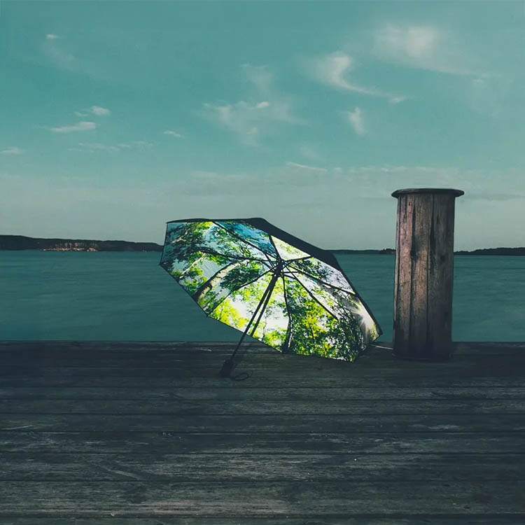 Umbrella with photographic motifs from Happysweeds that combines reliable weather protection with a sleek design inspired by nature. The umbrella works just as effectively on rainy days as in strong sunshine and features an automatic opening that makes it ready quickly when the weather changes.