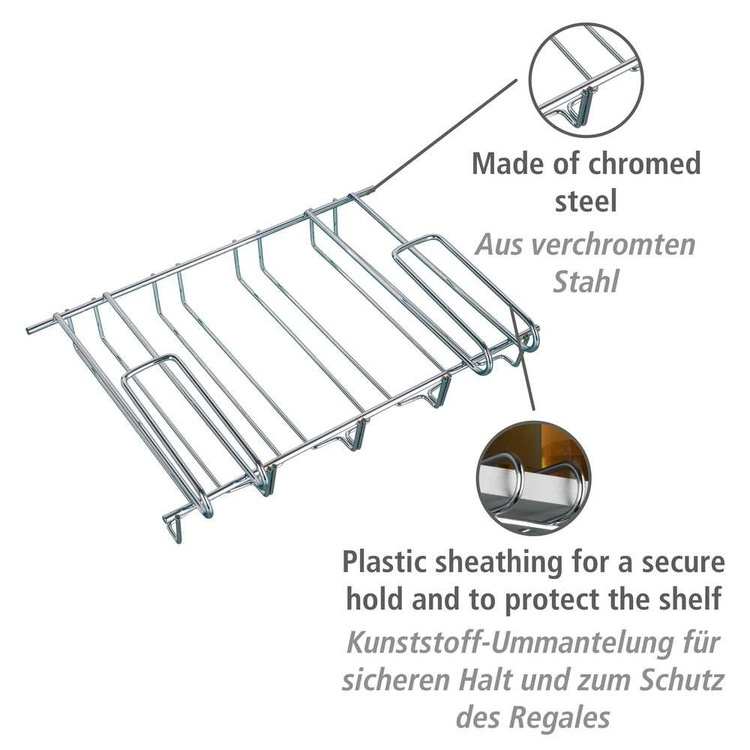 Easy to assemble. Simply hang the holder on a shelf. No screws or glue needed.