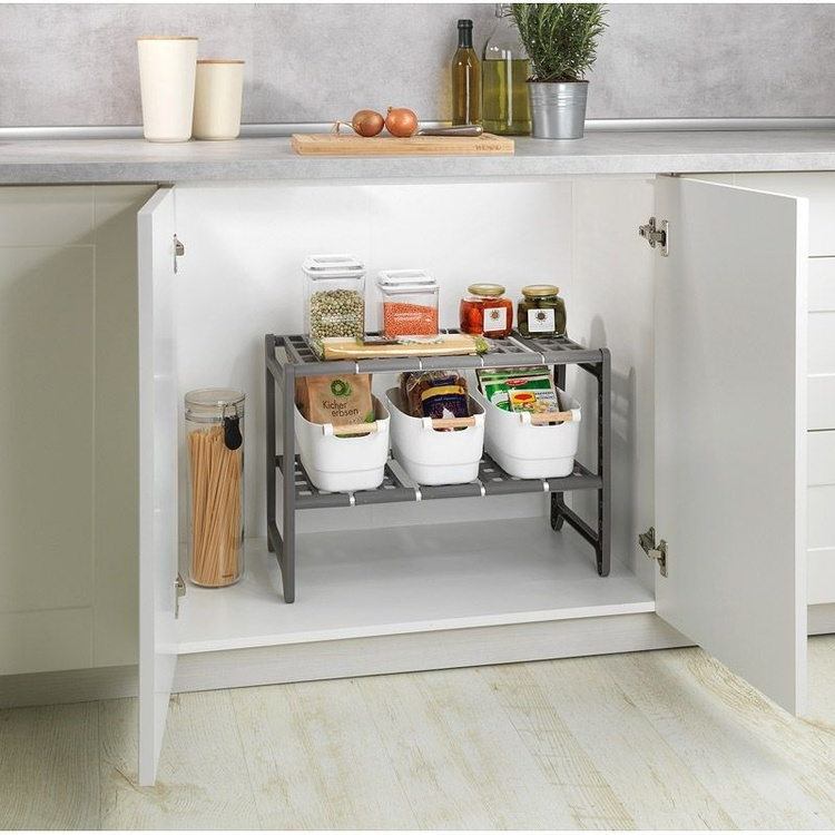Under Sink Storage, Extendable, FLEXI UNDER-SINK SHELF, 45 - 80 cm, Grey
