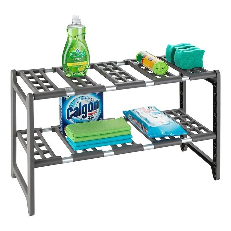 Practical and smart under the sink storage in your kitchen or bathroom. Two space-saving shelfs. Create more and utilize all available space. Adjustable shelf's to help fit the pipes. -