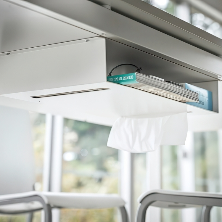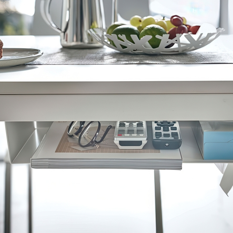 Keep your small essentials elegantly hidden with this under-table shelf.