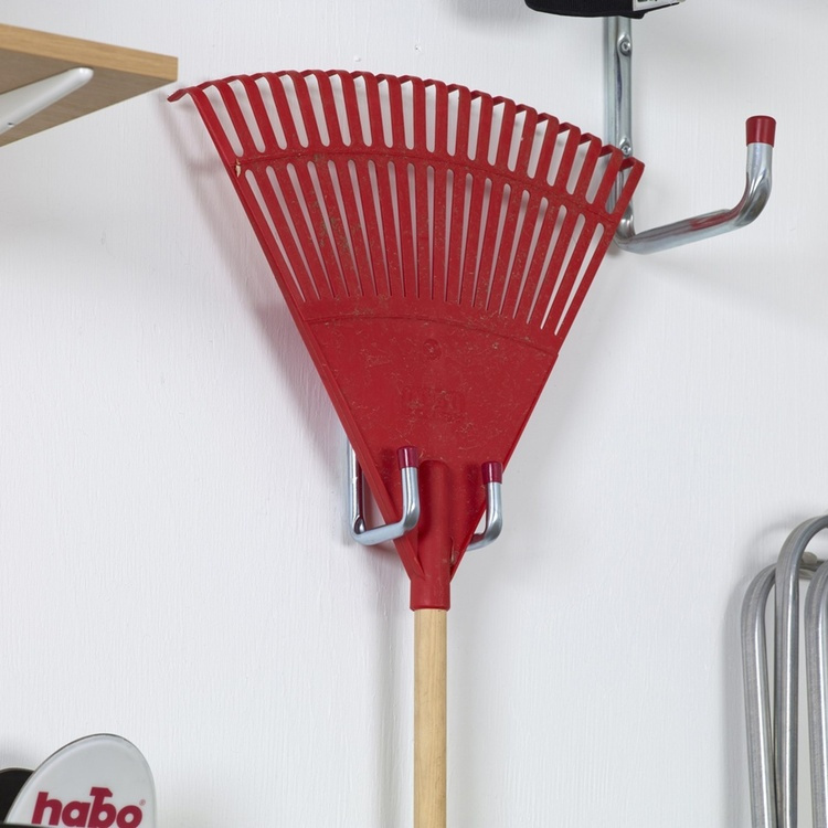 Suitable for hanging, for example, garden tools.