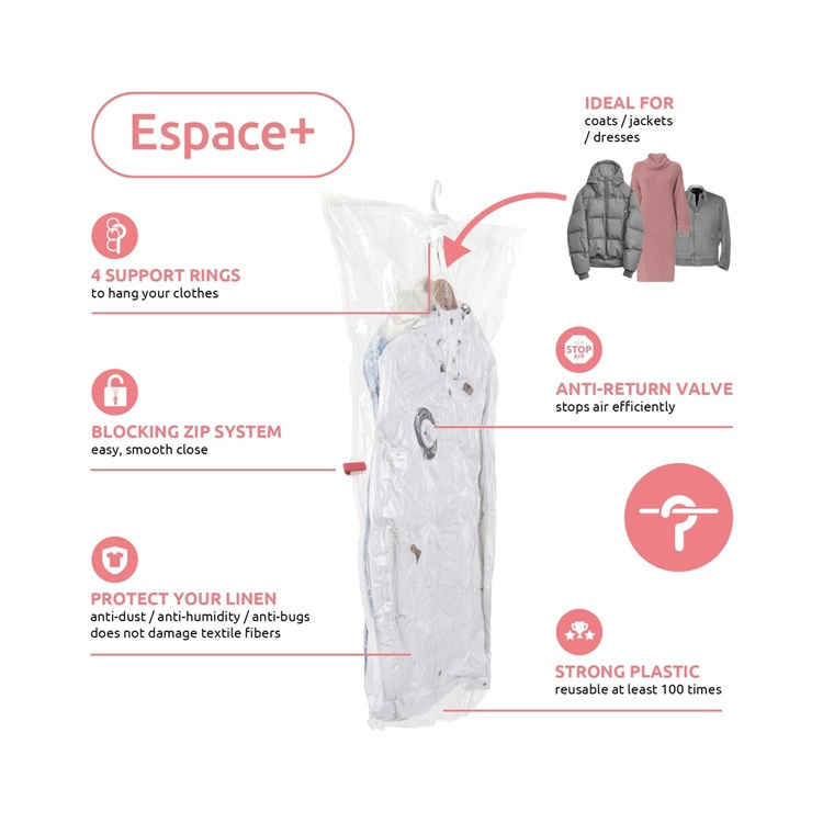 Create and save space in your wardrobe. Protects your clothing from dust, insects, odors & moisture. Increase the capacity of your wardrobe by 200%. Ideal for storing summer or winter clothes.