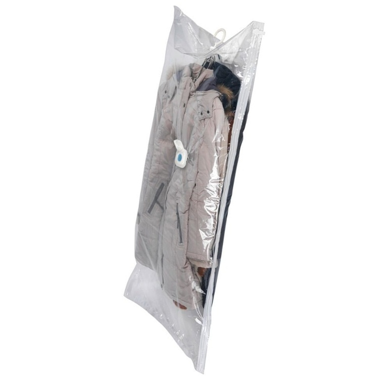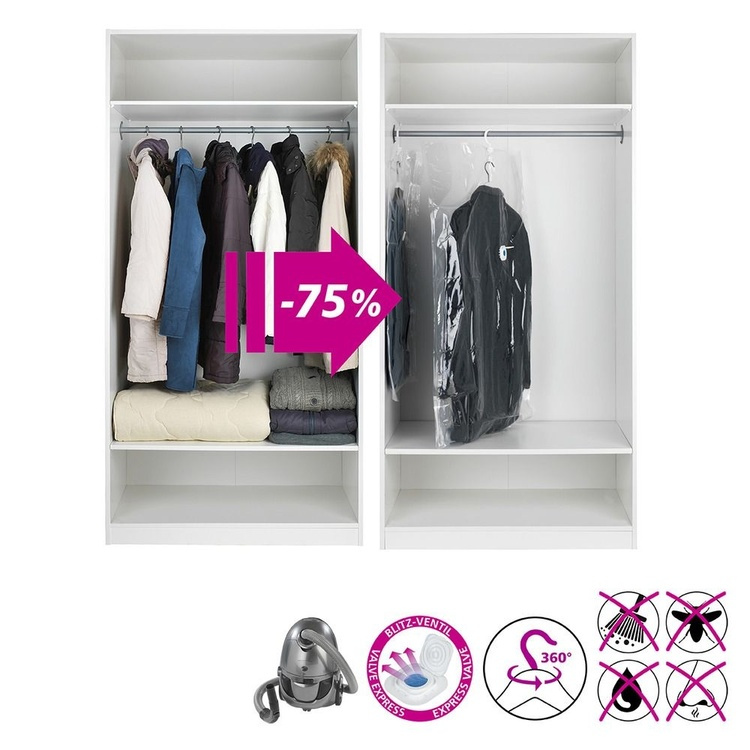Smart vacuum bag with hanger measuring 70 x H145 cm.