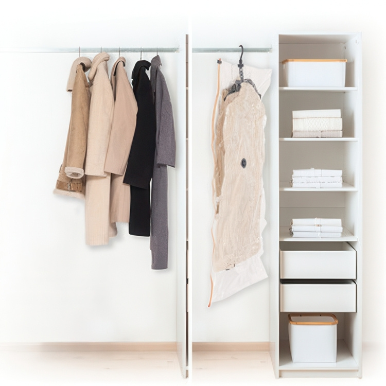 Create and save space in your closet. Protects your clothes from dust, insects, odor & moisture.
